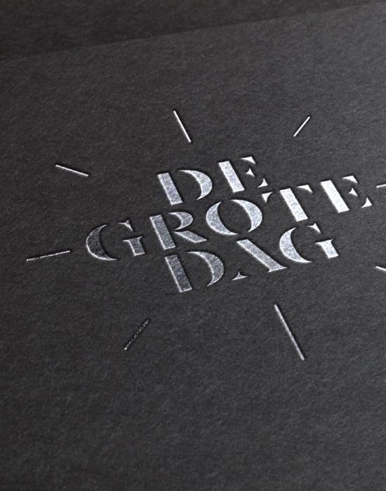 Het font is custom made en hierdoor uniek. Ook wanneer er op social kanalen alleen de ‘D’ wordt gebruikt is De Grote Dag herkenbaar als afzender. De kleur is tijdloos en ingetogen zwart zodat de foto’s het beste tot hun recht komen.